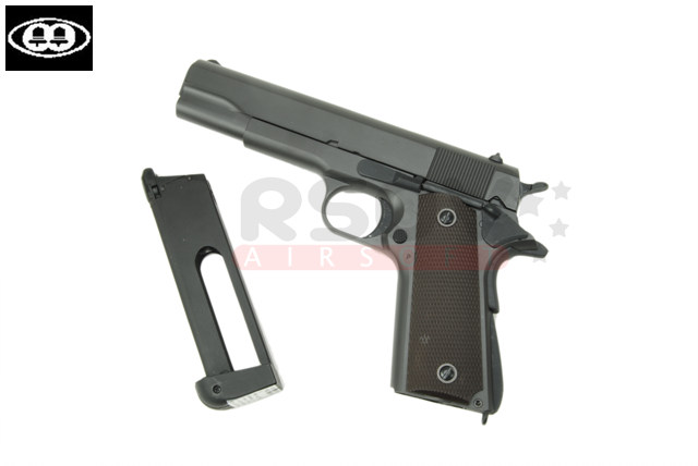 Et c’est là que revient notre petit 1911 Bell. Autrefois en ABS et chargeur gaz pour 50$ dans une valise plastique, il revient en ABS et chargeur CO2 ou gaz pour 65$.