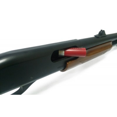 You no longer find 6.XX inner barrel on our CAM870M. A revolutionary design of our shell ejection system allows our gun using outer barrel in 17.5mm. The use of sabot in Airsoft Guns is rarely found. When the projectile is fired, the sabot blocks the gas, and carries the projectile down the barrel. Once the projectile clears the barrel, the sabot material falls away because of the shock of hitting still air pulls the parts away from the projectile, allowing the projectile to continue in flight. The use of sabot increases shot power and bullet velocity due to the lighter-mass BB, and increased accuracy due to the velocity and the reduction in deformation of the sabot itself.