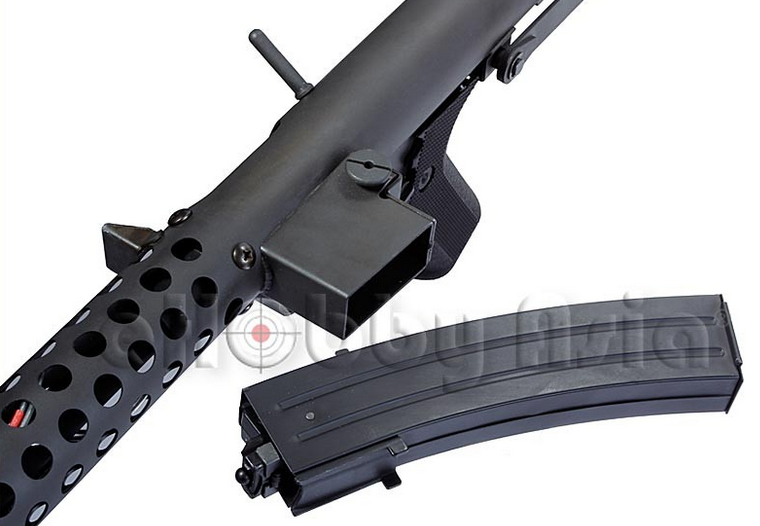 Pratiquement toute en acier, tirant en automatique seulement, à une puissance annoncée de 320fps, on pourra s’attendre si la gearbox est bien fabriquée et avec la lipo adéquate à vider ses chargeurs mid-cap de 40 billes avec une bonne réactivité et une cadence honorable.
