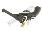 Il dispose d’un hop-up (LUI!), tout en métal, même propulsion par CO2, avec cartouches éjectables qui malheureusement ne seraient pas compatibles ni avec le modèle Wingun ni avec des revolvers standards du marché, disponible en noir uniquement. 970 grammes, 370 fps, hop-up calibré pour billes de 0.20g et 0.23g. Une réplique qui n’est pas une copie conforme mais plutôt une amélioration technique du modèle Wingun. Le tout proposé à un prix presque 3 fois moins élevé, à savoir entre 62 et 65€ selon le cours de l’Euro. En revanche pas de douille en spare pour le moment et probablement jamais.