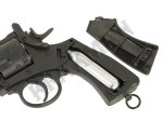 Le second constructeur et premier à proposer une réplique fonctionnelle fut Wingun (= Gun Heaven). Disponible en 3 versions 6mm (mais aussi en 4.5mm) : Noir, argent et “weathered” soit avec effet usé, possédant cette version je peux affirmer qu’elle est absolument splendide et plutôt très conforme au vrai, marquages inclus puisque licence officielle Webley. S’il est tout métal, magnifique, fonctionnel, avec des douilles éjectables, il faut aussi noter qu’il ne possède pas de hop-up et qu’il est très onéreux, compter près de 175US$.