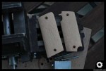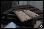 plaquettes-ruby-reelQu’à cela ne tienne ! J’ai donc fabriqué un outil pour réaliser un aspect de surface similaire au pistolet centenaire. Ça fera d’ailleurs l’objet d’un prochain article type tutoriel, je pense que ça servira à plus d’une personne (en particulier un certain Yannourugby qui si je ne me trompe pas apprécie l’usinage de plaquettes fait maison, p’tite dédicace :) ). Place aux photos pour voir le travail. Loin d’être parfait, plusieurs défauts mais je trouve que ça fait le taffe surtout pour un pistolet fabriqué en masse et à la va-vite sans grande attention pour l’esthétique. En tout cas je ne recommencerai pas, pour une plaquette et un sens de rainures j’ai compté 1h20 de travail, un bras bien endolori du fait de la crispation et les yeux explosés d’avoir trop forcé. Donc pour un peu plus de 5h de travail, même au soleil en écoutant “2000 ans d’histoire” (pour ceux qui connaissent, on en trouve beaucoup sur youtube et ça occupe bien l’esprit) avec une petite bière, je ne me relancerai pas de sitôt dans un travail similaire.