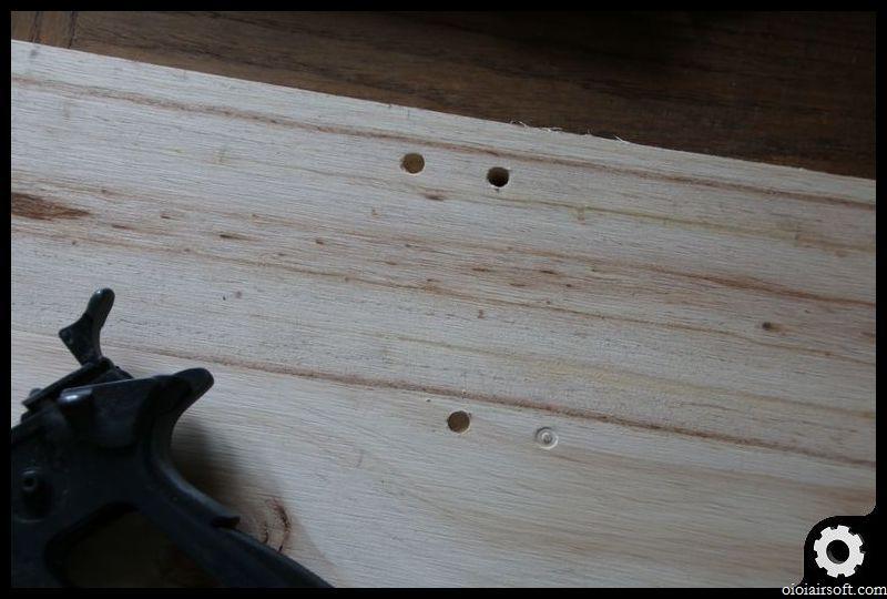 support-test-replique-1911-1911a1-airsoft-oioiairsoft-review-comparatif-3 28/11/201628/11/2016 / oioiairsoft Percer selon les marques. (Les deux trous de droite sont une erreur)