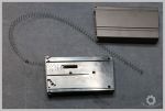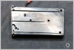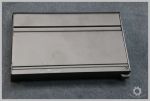 De l’acier pour la coque, la partie supérieure est en plastique et l’inférieure est une plaque en acier maintenue par les 3 lèvres de la coque principale et une vis qui va dans la partie interne en plastique.