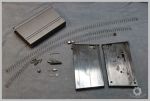 Chasser la goupille au sommet et enlever la vis au bas du chargeur. Sortir le bloc plastique. Retirer la vis qui maintien la pièce qui ferme la fenêtre d’insertion du ressort. Attention cette pièce peut vous sauter à la gueule. Vous pouvez sortir les 3 ressorts par la fenêtre ou pas. Séparez les deux coques et hop c’est réglé !