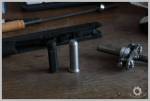 Bah ça va aller très vite, je n’ai aucun soucis de fonctionnement, ça tire toujours très vite, pas de casse. Simplement comme sur les photos ci-dessous on peut voir que le traitement au Birchwood s’est effacé sur certaines arêtes. Rien de choquant vu que c’est ma réplique principale et qu’elle passe son temps à sortir/rentrer dans le holster. L’anneau du spring guide plug aurait également mérité d’être usiné un tout petit poil plus petit en diamètre, ça a raclé à certains endroits, écrasant un peu l’alu au bord. À moins que ça ne soit les effets secondaires d’un test de spring guide à roulement fabriqué maison qui n’était pas super super ! Globalement c’est donc une modif qui tient et qui fonctionne. J’ai joué hier dans un hangar (-2°C hier), probablement pas plus de 7 ou 8°C à l’intérieur et ça cyclait vite et bien, chaque chargeur tirant toutes ses billes avec la culasse stoppée en arrière à la fin, soit 26 voire 27 billes tirées à basse température sans problème particulier.