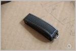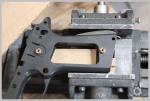 L’idée c’est de créer des rainures qui accueilleront les lèvres du système côté crosse. Pour que l’ajustement soit parfait, j’ai tracé les repères avec la pièce montée dans la frame et le tout fixé dans un étau. Ça permettra un parallélisme parfait entre les lèvres et la frame, ce qui n’a aucun intérêt fonctionnel puisque le maintien de la crosse ne se fait pas sur la frame mais uniquement le MSH. C’est juste histoire que ce soit bien joli quoi… Une fois bien tracé, il n’y a plus qu’à sortir la Dremel et tailler dedans. Par petites passes successives afin que la rainure ait la même profondeur partout et que vous ne pourrissiez pas votre pièce !