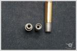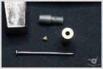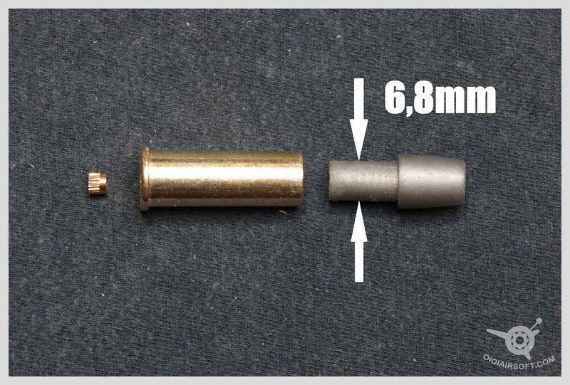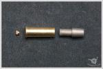 Le principe est simple : approfondir le logement de la bille dans la douille, il s’agit donc de fraiser/percer le manchon en plastique siliconé. Et oui, pas de la partie en laiton, ça serait trop simple. Le plastique est maintenu en force dans la partie métallique et n’est malheureusement pas assez profond pour y mettre plus d’une bille supplémentaire, soit 2 billes par douille. En revanche cette partie plastique est suffisamment étroite pour que vous foiriez votre modification si vous n’êtes pas assez précis.