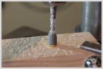 Une fois ceci fait, il faut s’attaquer aux choses sérieuses, j’ai utilisé une fraise de diamètre 6mm dont j’ai meulé le corps afin d’en réduire le diamètre. En effet avec une fraise ou forêt non modifié lorsque vous allez percer, vous allez arracher la gorge en silicone qui maintien les billes en place et donc ruiner la douille pour rien. Après ça, pas de secret, faut y aller. Percez à la bonne profondeur le plus droit possible pour ne pas déchirer le plastique sur un côté. Pas de panique, il sera tjs temps de rattraper le coup avec de la super glue mais en ayant fait l’expérience, ça ne tient pas très bien quand même…