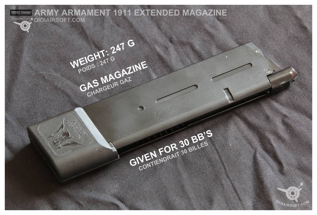 1911 extended magazine mag GBB GBBP airsoft long chargeur army armament colt 45 meu kimber r28 sandstorm darkstorm base pad 30 bb bb’s billes green gas gaz review test blowback pistol oi 03/08/2018 / oioiairsoft