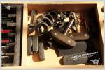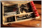 Pourquoi ? Comme beaucoup de joueurs amateurs de pistolets, j’ai un paquet de pièces d’origine ou d’upgrade qui traînent un peu partout : sur le bureau, les étagères, dans des boîtes que parfois j’oublie… Et ces pièces sont régulièrement rayées ou “perdues”. Donc pour les rassembler et les protéger, particulièrement les culasses, frames et petites pièces sorties de leurs emballages, j’ai décidé de fabriquer cette boîte de rangement de type vintage avec un bel aspect, comme ça j’apprécie particulièrement l’ouvrir et me relancer dans mes projets de GBB custom. Un peu comme un gamin ouvrant son coffre à jouets.