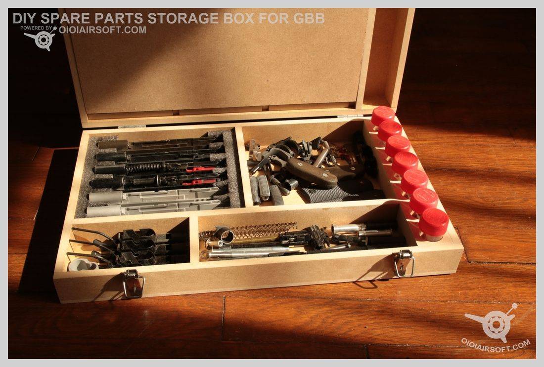 DIY homemade storage box replica spare parts pieces GBB GBBP NBB pistol pistolet stockage rangement boite réplique wood retro vintage arrangement oioi airsoft oioiairsoft (17) 03/09/2018 / oioiairsoft