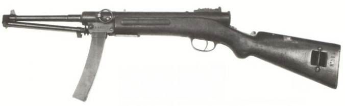 Designed in 1922 by the Technical Section of the French Army (STA), the PM STA 1924, submachine gun using the 9x19mm Lüger cartridge with an open bolt operating in automatic mode only, completed conclusive tests in 1924 and was ordered from 8,000 copies at the french weapon manufacture of Saint Etienne to endow the French troops sent in 1925 to Morocco during the Rif War. Of a fairly classic design, it is nevertheless equipped with a bipod and a dust cover on the magazine well. 1000 will be manufactured and the field tests will again be conclusive. It will equip some crews of the Maginot line during the second world war as well as resistance fighters. The need for standardization of equipment at the end of the war will stop the career of this first French regulatory submachine gun.