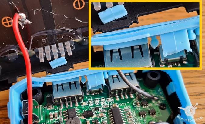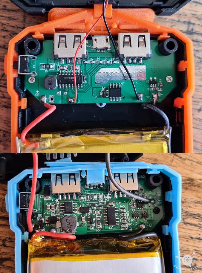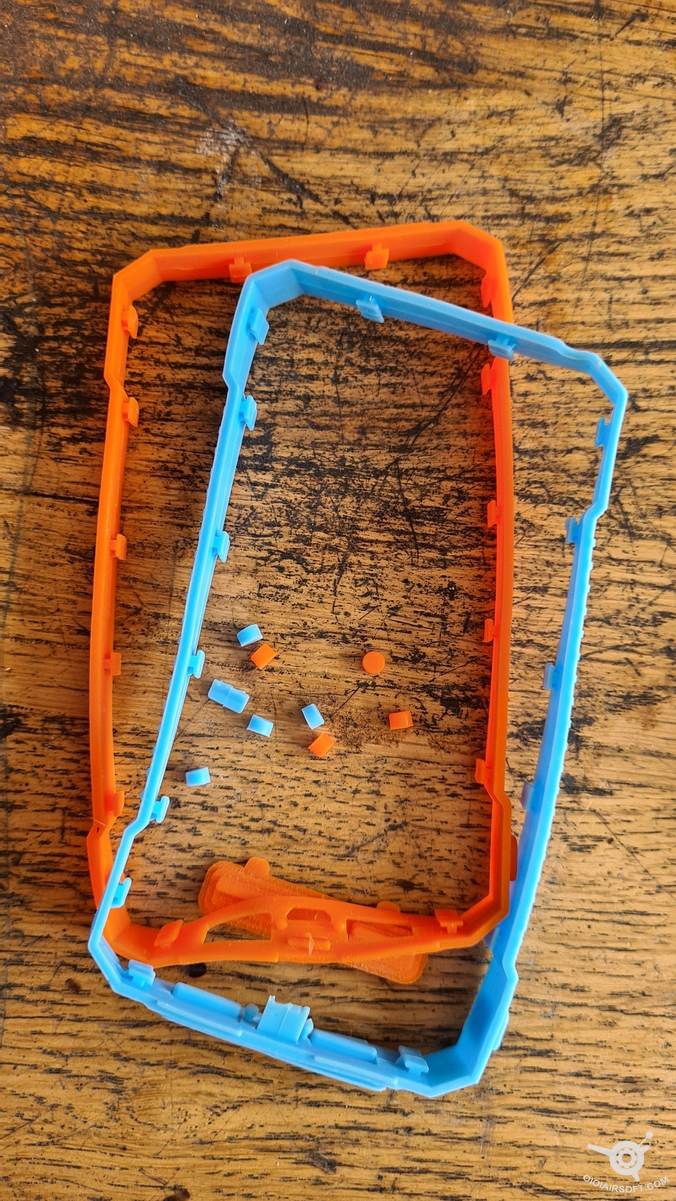 La copie est tellement précise en extérieur que les cerclages caoutchoucs sont interchangeables. J’aurai donc désormais une batterie orange fonctionnelle en récupérant le joint sur la batterie HS !