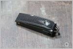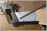 L’idée c’est de créer des rainures qui accueilleront les lèvres du système côté crosse. Pour que l’ajustement soit parfait, j’ai tracé les repères avec la pièce montée dans la frame et le tout fixé dans un étau. Ça permettra un parallélisme parfait entre les lèvres et la frame, ce qui n’a aucun intérêt fonctionnel puisque le maintien de la crosse ne se fait pas sur la frame mais uniquement le MSH. C’est juste histoire que ce soit bien joli quoi… Une fois bien tracé, il n’y a plus qu’à sortir la Dremel et tailler dedans. Par petites passes successives afin que la rainure ait la même profondeur partout et que vous ne pourrissiez pas votre pièce !