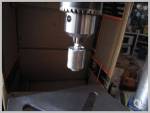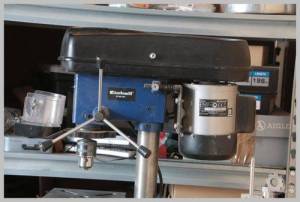 Une perceuse à colonne fait son apparition dans mon appartement. Un investissement de 80€ frais de port compris, que j’ai dû rentabiliser à 36.000% depuis. Je suis tellement fier de ma machine à l’époque que je pose à côté d’elle en photo. Plusieurs années de bons et loyaux services : perçage de tous matériaux, fraisage de bois et tournage de métaux. C’est bien avec cette perceuse que je réalise le levier d’armement coudé en acier de mon Mosin-Nagant Zeta Lab, comme vous pouvez le voir ICI (2600 visites quand même pour un article très spécialisé !). Je ne compte plus les morceaux d’acier, aluminium, bois que j’ai pu “tourner” sur cet engin en meulant directement dessus ou avec des limes/rapes.
