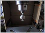 L’idée c’est de monter la réplique avec son main spring housing sur la crosse et de venir marquer le centre du picot au moyen d’une tige spécialement usinée avec la perceuse à colonne, un pointeau quoi. J’ai aplati préalablement la zone afin que les reliefs ne viennent pas perturber le traçage puis perçage. Une fois cette cruciale étape réalisée, plus qu’à percer et hop !