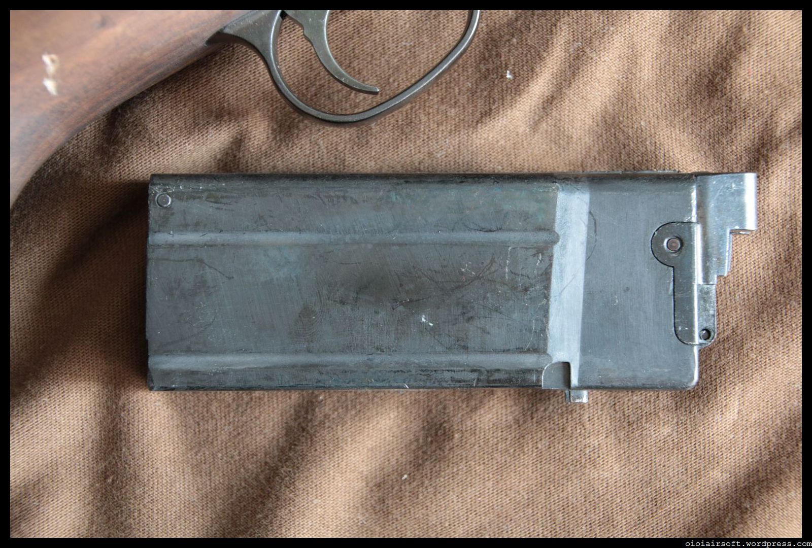 The first thing we can see is its similarity to the Marushin model, as expected. I do not have my Marushin rifle anymore but I kept many photos from mags and I think I can say 99.9% certainty that they are intercompatible. They are not identical and vary in shape and color of the cap, an additional cavity under the Marushin mag and a different finish, painted black with Marushin 1st versions, very… paint appearance