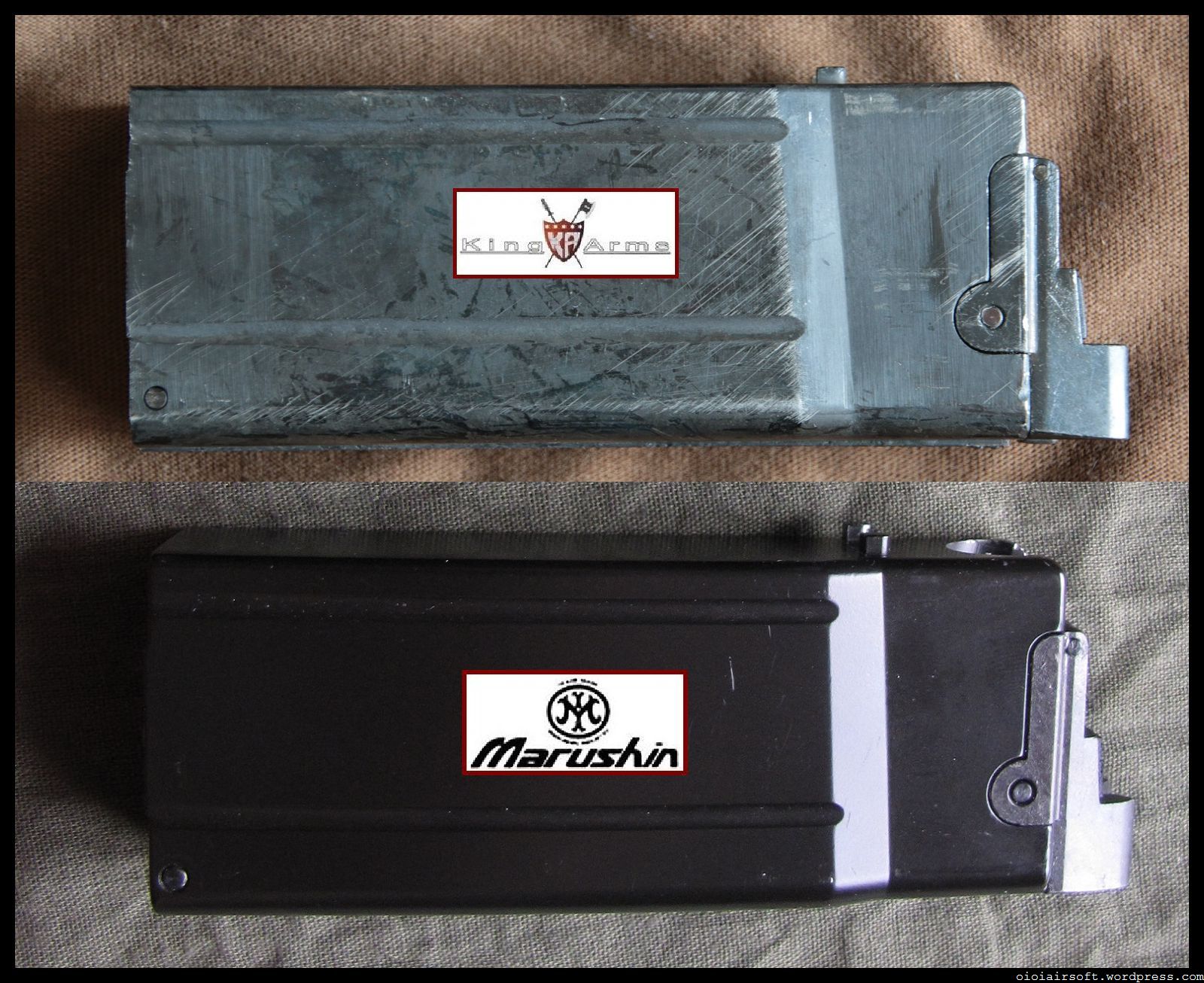 Simple and relatively fast change that increases capacity to 21 BBs per charger but vitally requires to empty mags after games to avoid the risk of premature wear of the ball rebound spring (already weak at Marushin, more strong in King Arms in my impressions).