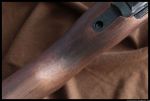 Not only they applied a tint of the best effect, King Arms has added in some places a layer under the dye of a dark product. The result is an uneven wood, darker particularly in the handle and in a few other places, it really is of the most beautiful effect ! And even if it is a hasty and involuntary application of dye, we finally have something approaching perfection in my eyes.