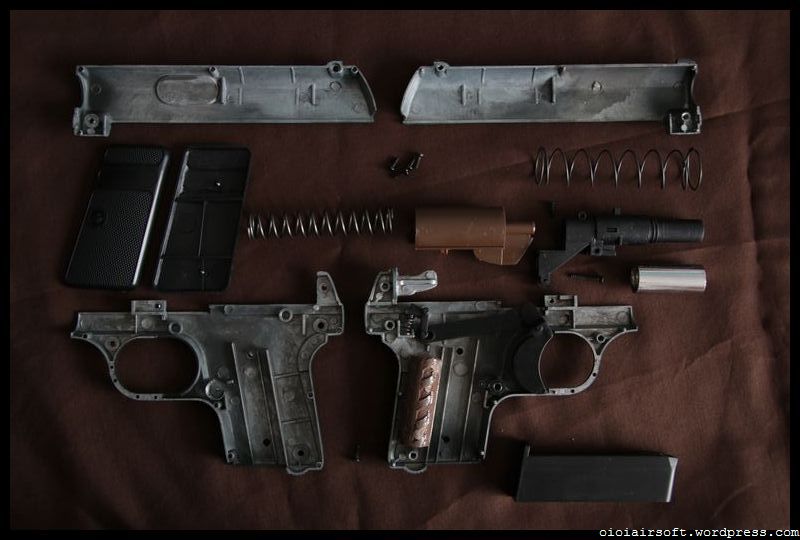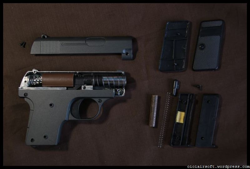 Ces petits spring fonctionnent parfaitement bien, aucun incident de tir à noter pour le moment, le fait qu’ils soient intégralement en métal apporte un gage de solidité non négligeable. Très compact, il tiendra dans n’importe quelle poche et ne craindra pas les chocs. Question esthétique il tient aussi la route puisqu’à part les quelques vis cruciforme visibles l’ensemble est plutôt homogène sans défaut majeur, on peut aussi s’amuser à en poncer les arrêtes pour laisser le métal apparaître et lui donner un effet sympa. Il s’agit d’un modèle moins cheap ou plutôt mieux conçu que ceux qu’on a l’habitude de voir dans ce type là puisqu’ils ont un hop-up, qui plus est rudement efficace, un véritable bouton d’éjection du chargeur, tout en métal avec un interne simple et solide à priori. La portée est particulièrement impressionnante au regard du prix, de la puissance de l’engin et de sa taille. La précision aussi est plus qu’acceptable, le canon ne mesurant que 4.4cm, tout dans un buste humain à 24m (Cf vidéo). La puissance de 160 fps (0.24J) est trop élevée pour que la réplique soit autorisée aux mineurs mais suffisamment faible pour n’avoir aucun état d’âme à tirer à bout portant. Pour moi c’est l’humiliator à posséder car ayant une portée utile impressionnante, de quoi ridiculiser très facilement un adversaire même à 25 mètres. Oui oui, je parle bien de 25 mètres, même si c’est difficile à croire, c’est une distance mesurée et non estimée à la marseillaise, et encore il dépasse largement les 30 mètres de portée maximale pour peu qu’on y graille de la 0.25g voire de la 0.28g, la bille flotte doucement et loin un peu comme avec certains modèles Marui.
